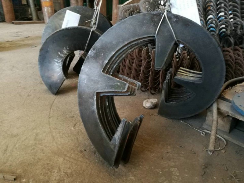 生產(chǎn)工藝:專有特殊工藝?yán)鋲撼尚危粠?0mm以下連續(xù)等厚螺旋葉片為連續(xù)軋制;大帶寬、大外徑小內(nèi)徑、大厚度的連續(xù)等厚螺旋葉片由分段等厚螺旋葉片焊接而成。